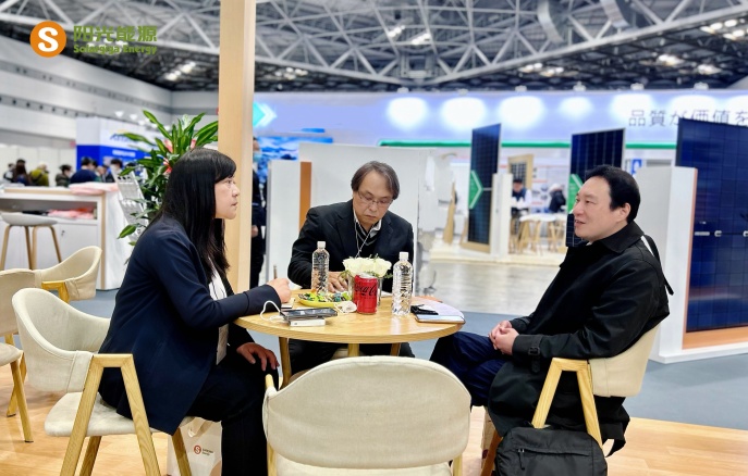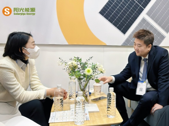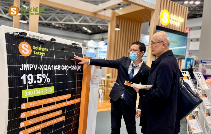 本次展会,阳光能源集中展示了公司的前沿技术和先进的光伏组件产品,5 款展品高度契合以小型项目为主导的日本光伏市场需求。其中一款 Giga-N 系列 48 片轻质双玻户用光伏组件,采用了 N型TOPCon 电池技术搭载 210R 矩形硅片,极大地提升了发电效率,组件转换效率提升到 23.0% ,即便在弱光环境下也能高效运作;在外观设计方面,打造更加简约时尚的全黑外观,适用于各类建筑风格。