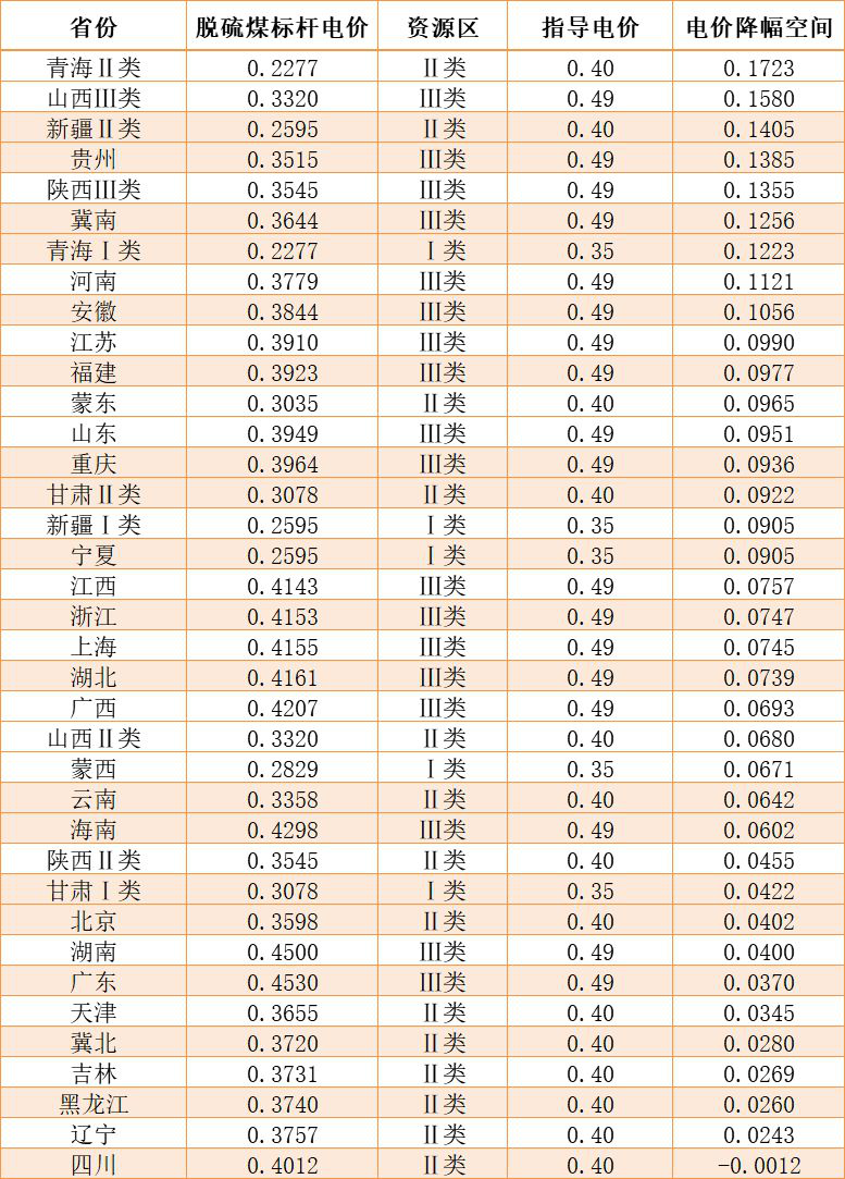 从电价降幅空间来看,青海、新疆二类、山西三类、贵州、陕西、冀南、河南、安徽等地降价幅度均可超过0.1元/千瓦时,相对竞价优势更为明显一些。但以四川、冀北、湖南、广东以及东三省为代表的地区,电价降幅空间仅有2-3分/千瓦时左右。具体数据见下表: