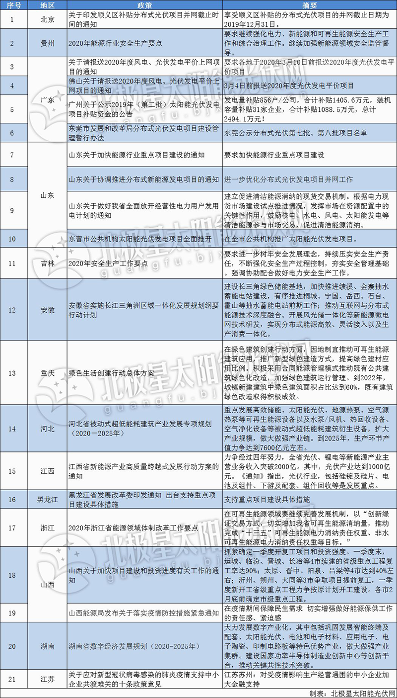 除了平价项目,各地方政府也积极推进2020年分布式光伏发展。